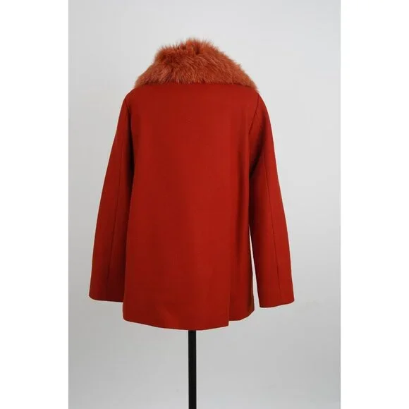 STAY COZY, WARM, COOL AND FASHIONABLE!Who would not love a sort of a quantity-quality love story that our shop offers? Style classy and comfy without spending too much for jackets, sweaters, shirts and coats! So many to choose from!Like this one: $480 Herno Women's Fur Collar Wool Blend Coat Orange NWOTColor is sort of a orangish red.This ultra-warm puffer coat in an eye-catching tangerine hue that emboldens your winter lineup, is crafted by Italian outerwear label Herno. Featuring extra-warm goose down insulation, in this statement style.Measurements (approximate) laying flatFeaturesStand collarFits true to size, order your normal sizeDesigned for a relaxed fitSnap-detachable fur-trimmed collarFront zip closureTwo side slit pocketsLinedMade in ItalyShell: wool/polyamide; lining: polyamide; real fox fur trim; origin: Finland; dyed; fill: polyesterDry clean without fur trimImportedMeasurements taken while lying flat:Armpit to armpit: 17"Shoulder seam to shoulder seam: 15"Shoulder seam to end of sleeve: 25"Length from under collar to the hem: 27.5"