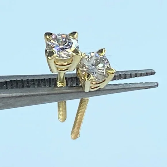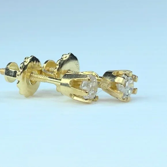 A classic pair of 14K yellow gold stud earrings decorated with diamonds in a brilliant cut weighing a total of 0.3 ct in six prong setting. The high quality, durable materials and six prong closure make them the perfect accessory for everyday wear. The diamond are in G-H color and VS2-Si1 clarity. Diamond studs suit women of all ages and styles and are guaranteed to attract admiring glances. Shine in this timeless piece of jewelry. This is a new pair of diamond.