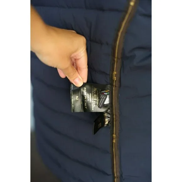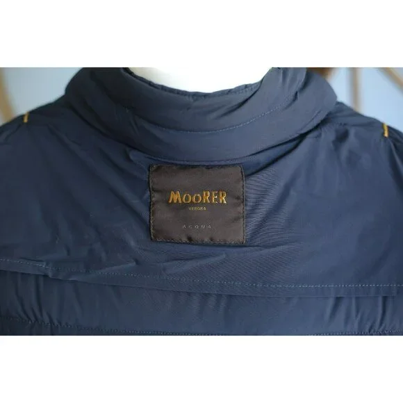 Measurements taken while lying flat:Armpit to armpit: 21”Shoulder seam to shoulder seam: 18”Shoulder seam to end of sleeve: 25.5”Length from under collar to the hem: 26”Condition: Our Condition Criteria- 10/10 Brand New Item, Unused- 9/10 Ideal Condition, No Flaws and Signs of Use. - 8/10 Very Good Preowned Condition, Minor Signs Of Use - 7/10 Good Condition, Slight Signs of Usage- 6/10 A Bit Damaged PieceSTAY COZY, WARM, COOL AND FASHIONABLE!Who would not love a sort of a quantity-quality love story that our shop offers? Style classy and comfy without spending too much for jackets, sweaters, shirts and coats! So many to choose from!Like this one: NWT MOORER Aqua Padded Shell Light Down Jacket Size 52Boudin-quilted short biker-style jacket. Front fastening consisting of chunky brushed metal double glider zip. Small pocket on the sleeve and zipped welt pockets on the sides. Interior quilted on the back portion with double pocket for valuables. Fabric composition: Bi-stretch water-repellent resin-finish fabric - composition. Compact and very resistant to pulling, this fabric is ideal for padded and quilted garments.Message us here for inquiries and hassle-free transactions!