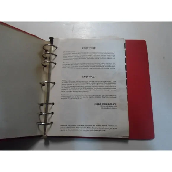1983 SUZUKI TEMPTERGR650 SERVICE REPAIR MANUAL BINDER MINOR STAINS WORNNote:Binder has minor stains on the front, inside and back covers. The manual itself also contains stains on the front cover including pages within. The back cover and pages towards the end are missing. Over all the manual is in good legible condition. The second quantity of this manual contains a different binder.See Photos.Informative with illustrations, covers allot, great manual to have when you own a SUZUKI. This manual will save you money in Repairs/Service. This manual is published by SUZUKI and are the same manuals the SUZUKI mechanic/technicians use.If you have further questions feel free to message us or call us at FEEDBACKWe will leave POSITIVE Feedback after we receive your payment. Please do not forget to give us POSITIVE Feedback and FIVE STARS on all of the Detailed Seller Ratings!If you are not satisfied with your shopping Experience, please contact us to get a solution before you decide to leave a NEUTRAL or a NEGATIVE Feedback, We will do our best to solve any problems for you as soon as possible. We will provide you with the BEST POSSIBLE service because the POSITIVE Feedback and FIVE STARS are what we are striving for. Please email me through "My Messages" or "Ask Seller Questions" if you have any question about our listings or your purchase.Please give us a Five Star Rating! Thank you very much! KC Track Page Views WithAuctiv