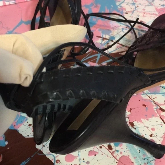 Very Sexy D’orsay Slingback Sandals with nice grommet and whip stitch leather details.It’s another sexy take on a biker chic or tough chick but dainty at the sAme time.It comes with an ankle wrap for an added sexy appeal It’s in Gently Used Condition with plenty of nights out leftMichael Kors Collection are the luxury line for Michael Kors and are better quality hence more expensive than their other linesRetail $495See pics and make me an offeror like for price drop updates..#34