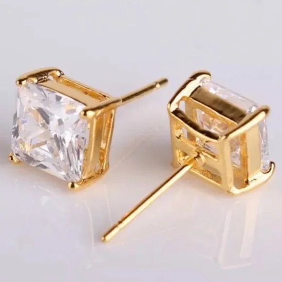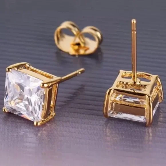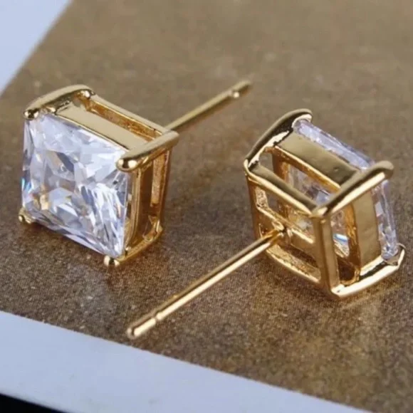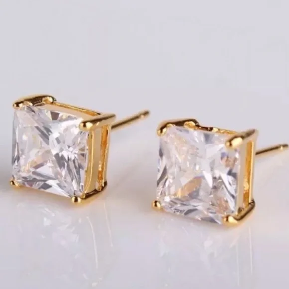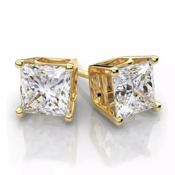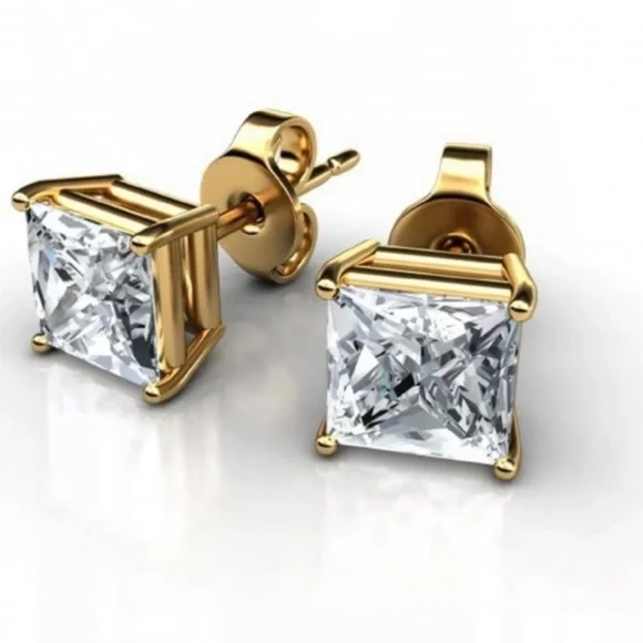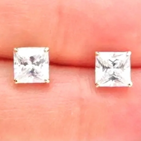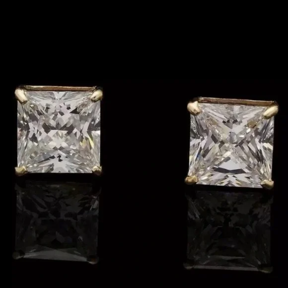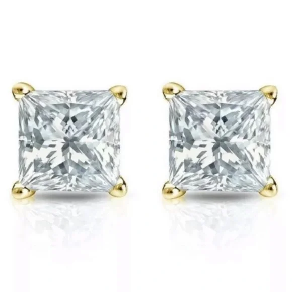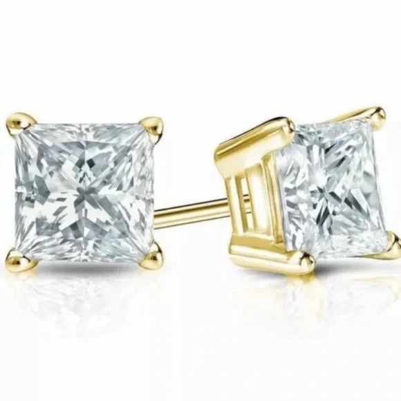 New w/out tags!Stunning & Luxurious!Approx 2 Ct Princess Cut Simulated* Diamond Stud EarringsSuper Sparkly, even in low lighting!Cut the same way as real diamonds for maximum fire & brilliance!Yellow Gold VermeilApprox 6x6mm Glitz and glam can come at a smart price. Our approx 4.0 ct. t.w. princess-cut simulated* diamond studs flash a brilliant sparkle in polished yellow gold vermeil. Perfect for traveling, outdoor activities and anywhere you want to feel worry-free about your accessories!*Set them with a diamond alternative: a lab created diamond simulant that is chemically distinct but virtually indistinguishable from a perfect diamond. Each stone will last forever and should not chip, crack or discolor. Please see pic 13 above for more info!***Comes in a gift box or pouch, possibly not from Neiman Marcus!✅Please Ask All Questions Prior To Purchasing As ALL SALES ARE FINAL‼️🚫NO RETURNS ACCEPTED‼️✅Follow 2nd To Last Photo Jewelry Maintenance To Keep Your Jewelry Safe & New‼️✅All Shipments Will Be Photographed & Recorded‼️✅Open To Reasonable Offers‼️🚫No PP or offSales‼️🚫No Lowball Offers Please‼️