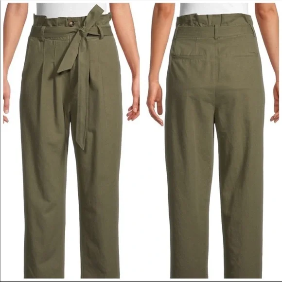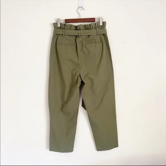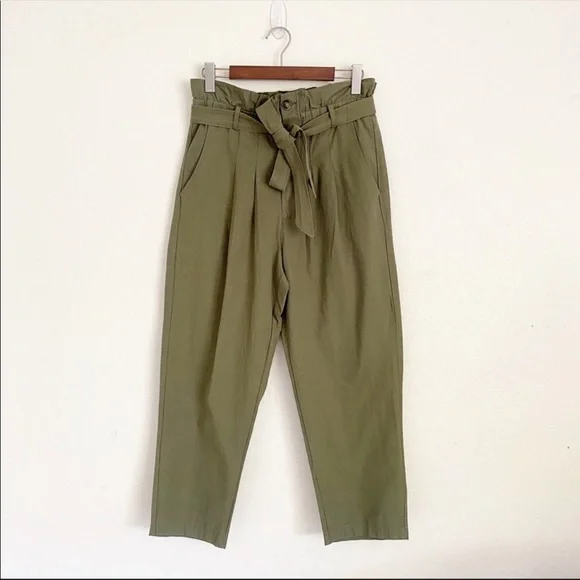 Made of light, breathable cotton twill fabric, the Paperbag Pant features a waist-nipping 13" rise, a ruffled waistband with a removable tie-front belt, handy side pockets, easy pleat detailing, and a relaxed wide leg. All you have to do is add your favorite crop top and voila—instant polish with a touch of attitude.High waistedElasticized waist with self tie Zip and button closure 4 pocket designankle length Size MBrand new with tagsPerfect for fall