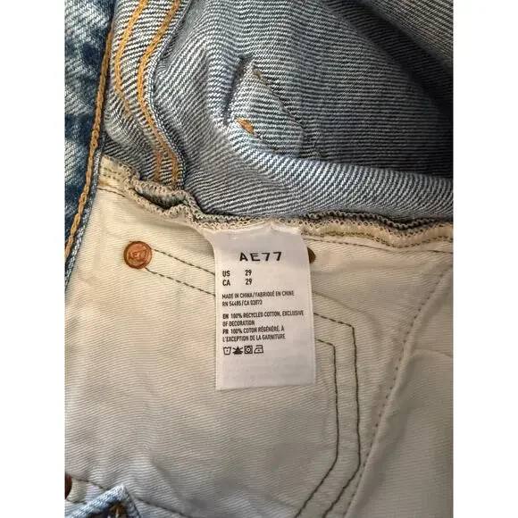 #2677 #2673AE77 Premium Denim Women's Cut-Off High Rise Shorts Sz 29 NWTNew With Tags Women's Cut-off Denim High Rise shorts Sz 29THESE ARE FROM THE PREMIUM LINE OF American EagleORIGINAL MSRP: $148.00Waist measures: 14.5 inches laying flatInseam measrues: 3 inches100% Recycled Cotton (NO STRETCH)ZIP FLYShips quickly!Please look at all the photo's and read description for the item.Any major flaws, if any, will be noted in the photo's.All measurements are approximateColor of item may differ based on each person's monitors being different.ALL SALES FINALPlease carefully review your order before confirming your purchase. All sales are considered final. We do not offer refunds or exchanges for any item sold.Thank you so much for visiting.