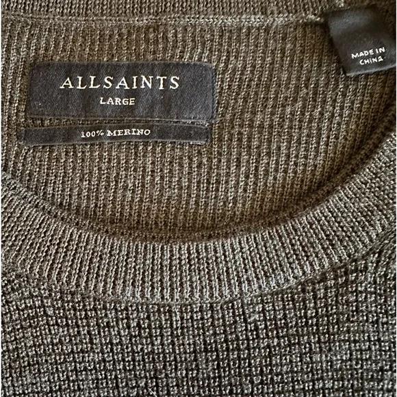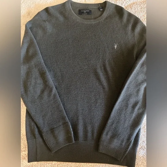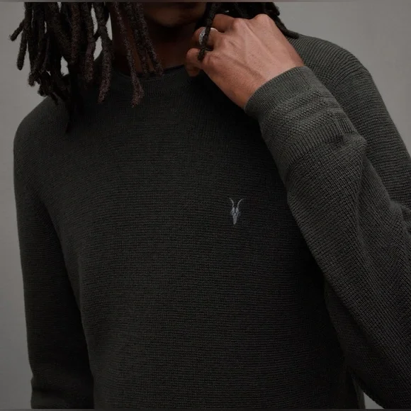 Perfect condition! Only worn once!Military detailing with an AllSaints signature. The Ivar Sweater is crafted from responsible merino wool, in a fine waffle stitch and our hallmark Ramskull sits embroidered on the chest. An everyday go-to, this jumper will be on rotation throughout the cooler months.PulloverCrew neckWaffle knitLong sleeveRamskull embroidery