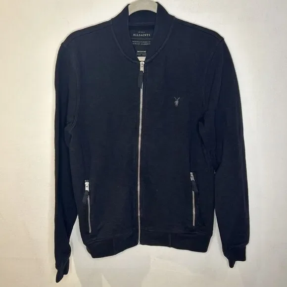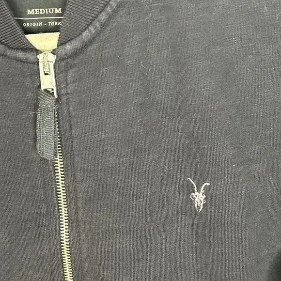 ALLSAINTS Oldsen Bomber Jacket Black Cotton Men's Full Zip Knit Jumper Size M