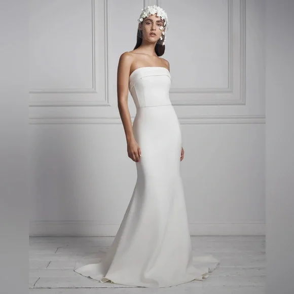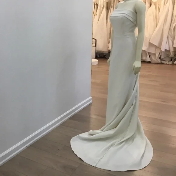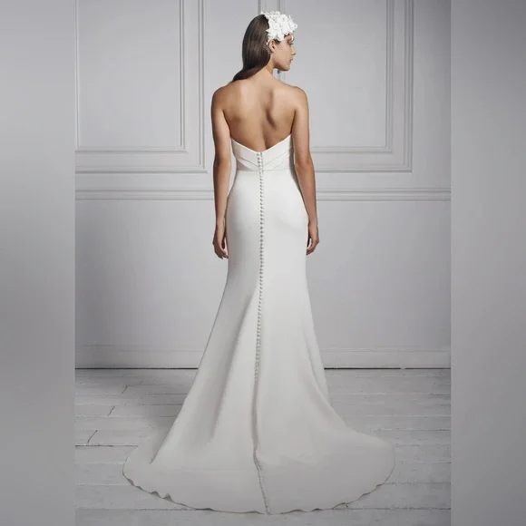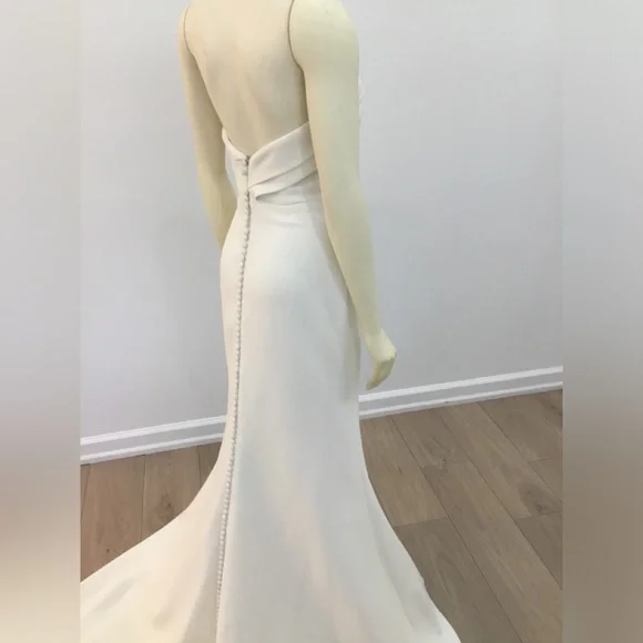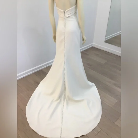 ANNE BARGE SAMPLE SALE! From Anne Barge Couture, Sante is a stunning column gown for a modern, minimalist bride. With a straight neckline and double cuff detail, subtle dip in back. In a mid weight crepe with beautiful drape, soft creamy ecru color,buttons down the back to the hem.Size 10, runs small, please refer to size chart for more information.We are a couture boutique located in Birmingham Michigan. Our listings onare sample gowns that may have been tried on, but have not been worn. Minor imperfections may be present.***Samples are sold as is, and all sales are final.***Love the dress but need a lower price? Make us an offer! We will do our best to accommodate.Email or call to schedule an appointment if you would like try this gown on.Questions? Please leave a comment. Thank you for shopping with us!