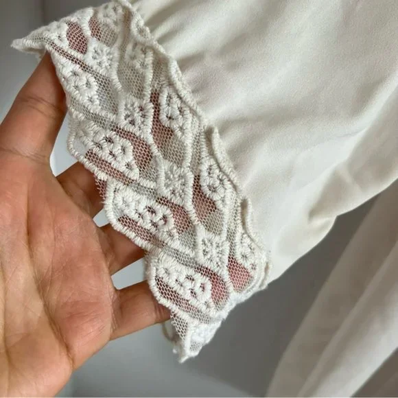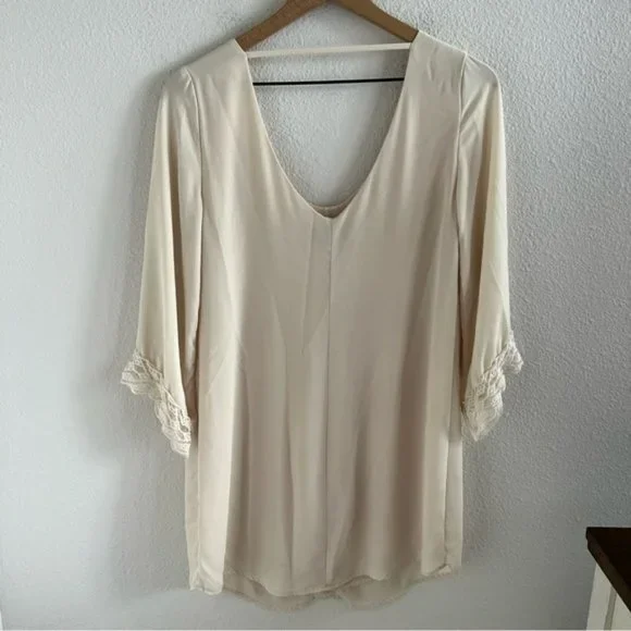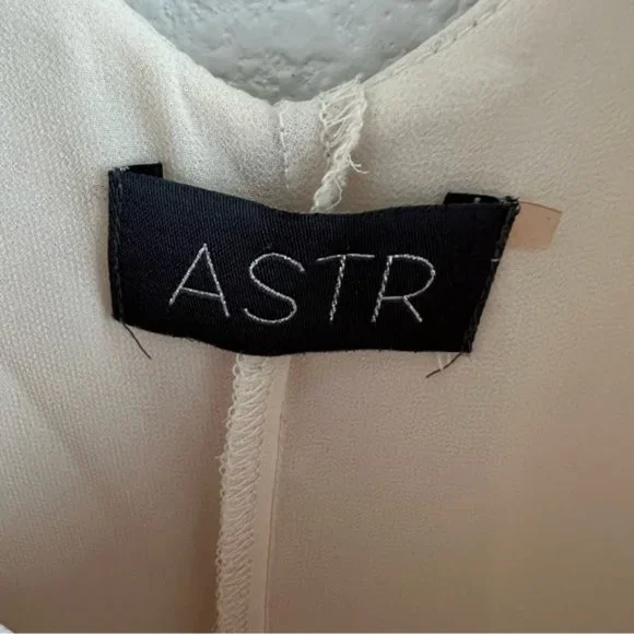 ASTR Cream Mini Dress Lace Detail Neutral BohoPreowned. Missing the size tag, confirm size via measurements below.Size: SmallUnderarm-to-underarm: 17"Length: 32"Measurements are approximate and taken flat.100% polyesterBoho, lace, neutral, cream, contemporarynever usedBuy from the mallShip within four days