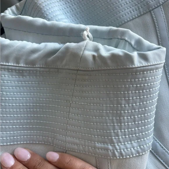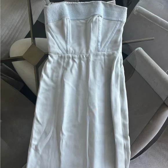 Beautiful strapless light blue gown with stitching to give it structure on the top. Worn once and in beautiful condition, just minor makeup marks that are not obvious. For length reference, I am 5’6! Originally $1200 - priced to sell fast!!!prom, homecoming, black tie events, wedding guest, formal wear, gown