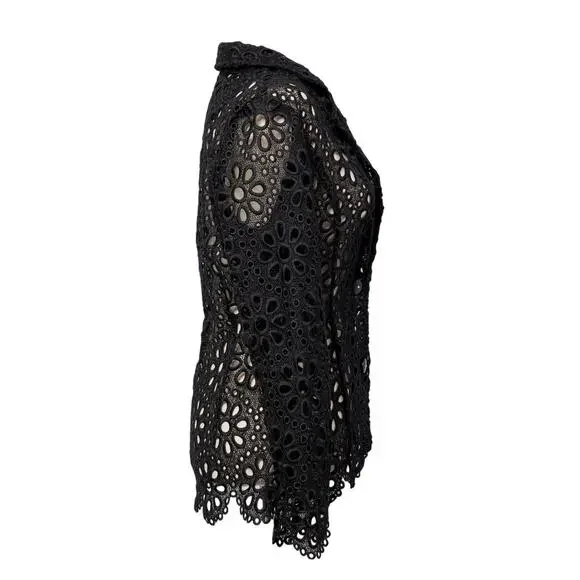 Berek Women's Black Lace Brazer Size XL Scalloped Long Sleeve Summer NWT