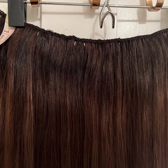 Authentic Bohyme Ethos 18" hand tied silky straight hair for natural beaded row installation. There are no split ends. The hair has been treated with Kevin Murphey color and only ever washed and conditioned with Kevin Murphy shampoo and conditioner.$150 for each or $300 total for both. Originally $640 each, $1,280 total.One row measures 11" wide X 18" long (85 grams)One row measures 10" wide X 18" long (80 grams)https://www.bohyme-ethos.com