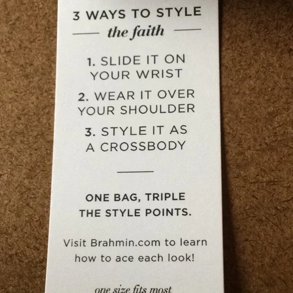 Brahmin "FAITH" Womens 3 style Crossbody Wristlet Shoulder Bag 8" x 9" x 4" NWTExperience timeless elegance with the Brahmin "FAITH" Women's Crossbody Wristlet Shoulder Bag. Crafted from genuine leather, this NWT bag offers versatile style that complements any wardrobe and color scheme. It features a magnetic closure, exterior slip pocket, inside zippered compartment, and comes with a shoulder strap and dust bag. The 8" x 9" x 4" size ensures a cute and chic accessory.Genuine LeatherCan Be Worn With Any Type WardrobeCan Be Worn With Any Color WardrobeMagnetic ClosureExterior-Slip PocketInside- Zippered CompartmentShoulder StrapIncludes Dust BagVery Cute / Very Chic!!!Size-8" x 9" x 4"CT item#23-20.113.200.01012020.BIN032