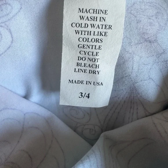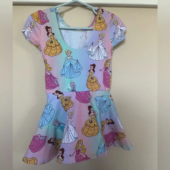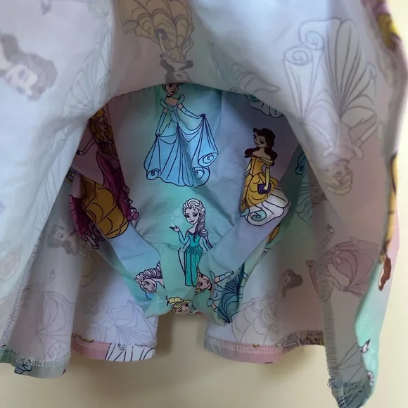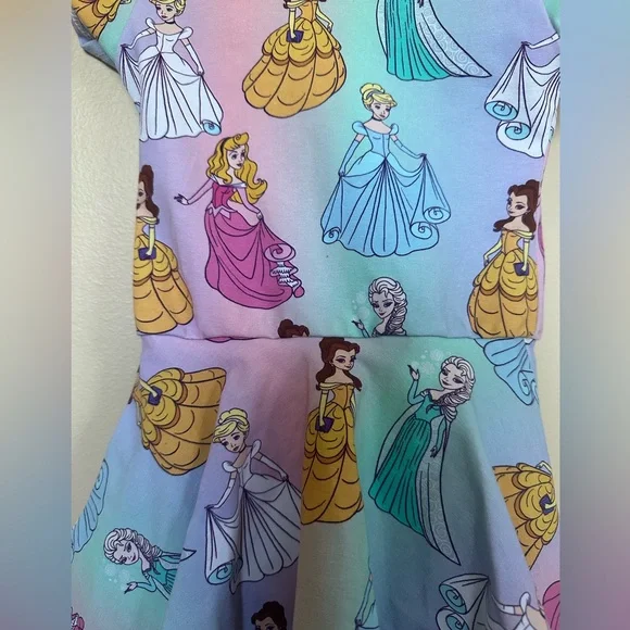 Brand new Size 3/4!My daughter outgrew before we had a chance to return to Disney and wear it.She is on the petite side and wore size 3/4 comfortably when she was in 3T and 4T.No flaws or imperfections except for one small dot on the front (barely visible if you’re not looking for it) under Cinderella as seen in the 2nd pic!