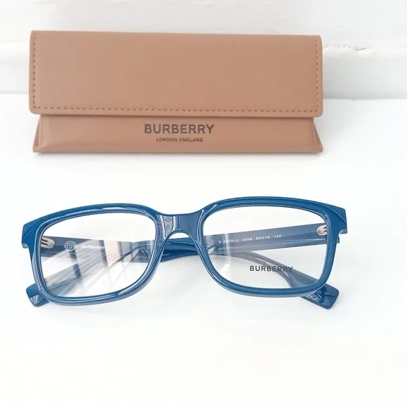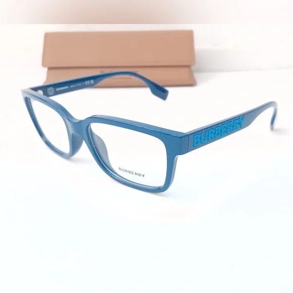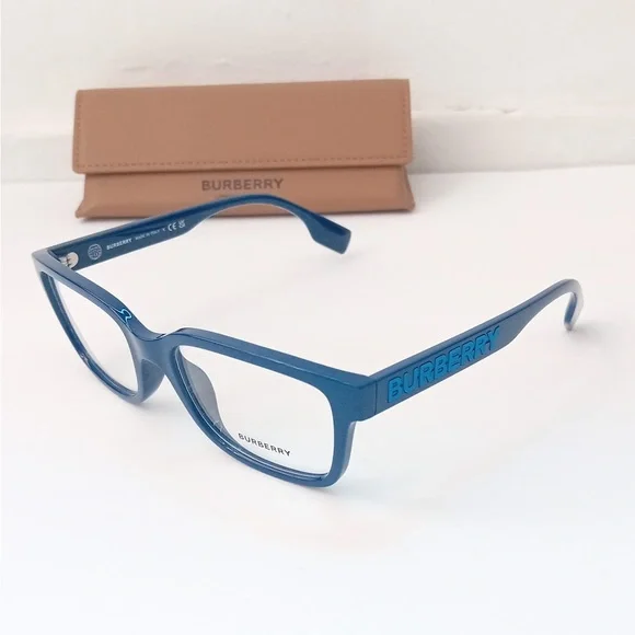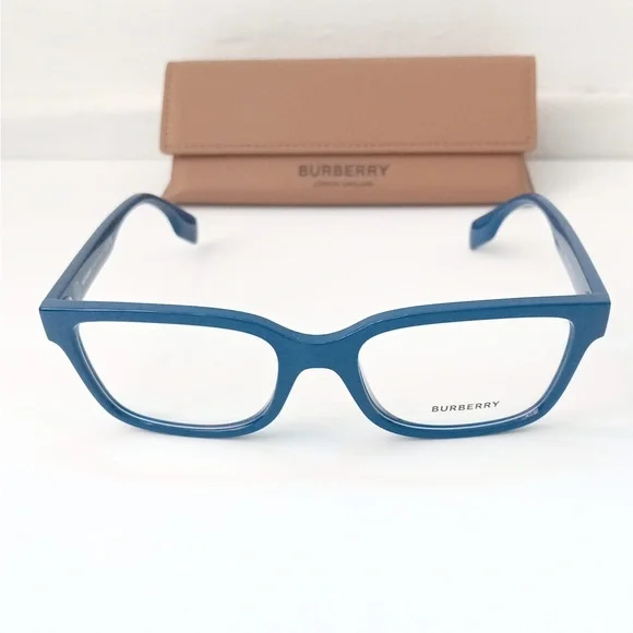 Burberry Charlie eyeglasses seamlessly blend style and comfort. The square shape, paired with a polished finish, gives these frames a timeless appeal. The frame color is a sleek blue, adding a touch of sophistication to any look. These glasses are not only stylish but also practical for everyday wear.Lens width55Bridge width 19Lens height 39.2Frame width 133Temple width 145