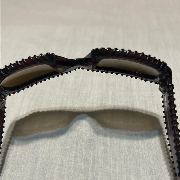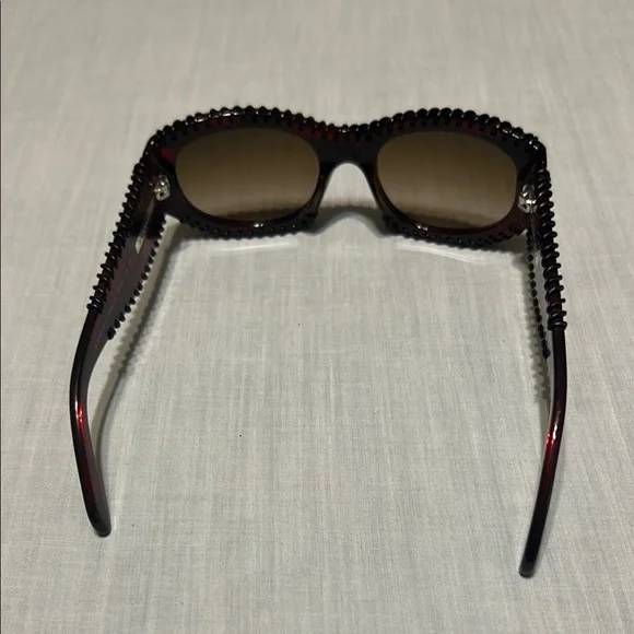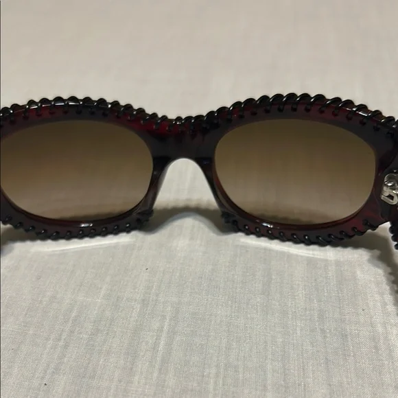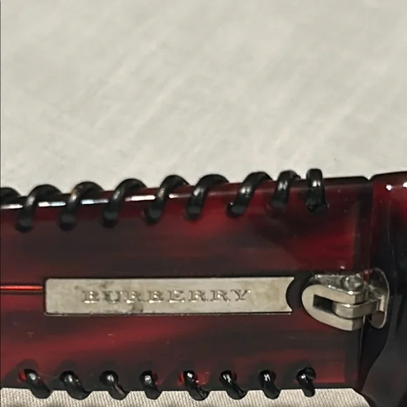 Pre owned. Good condition. Minimal scratches that does not affect vision. If purchased and not satisfied, refund will not be an issue. The color is a deep red/redwood with black coiled trim. A Burberry case is not included but a Case will be provided for shipping. Elevate your look with these chic sunglasses. Perfect for any occasion, they offer both style and comfort.