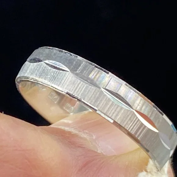 c1950's 14K white gold 5.0mm fine etching in detail wedding band sz9 3.8g
