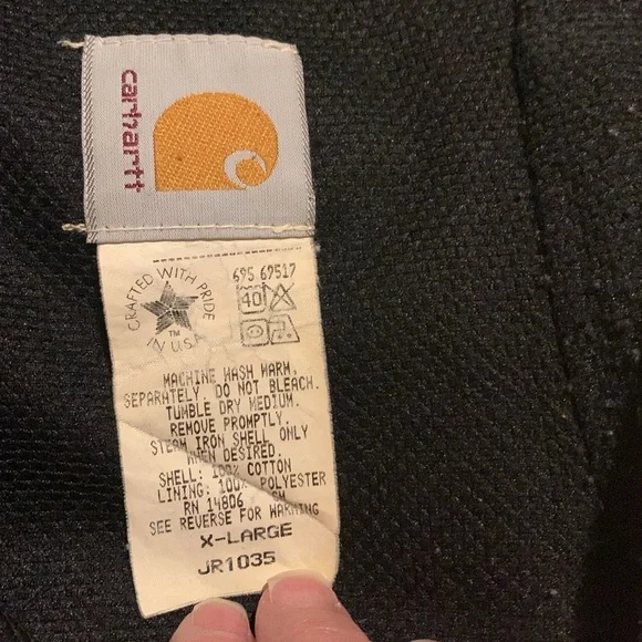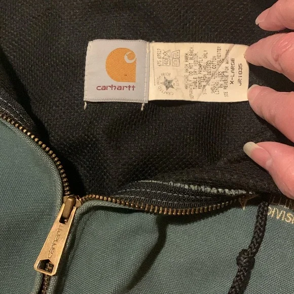 Vintage Carharrt Men’s Sz XL Cotton Canvas exterior, textured insulated interior. Black knit waistband/hem, and cuffs. No rips, tears, or stains. Very Good Used conditions. The Renaissance person will truly appreciate this quality. Made in USA, United Garment Workers of America. Small, embroidered NF (Norfolk Southern Railroad) Logo on Left chest side adds aesthetic appeal.