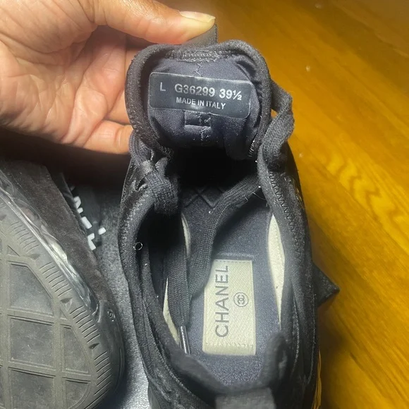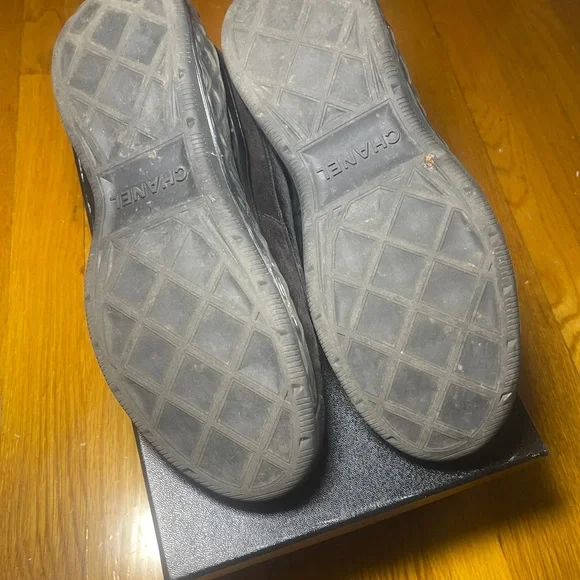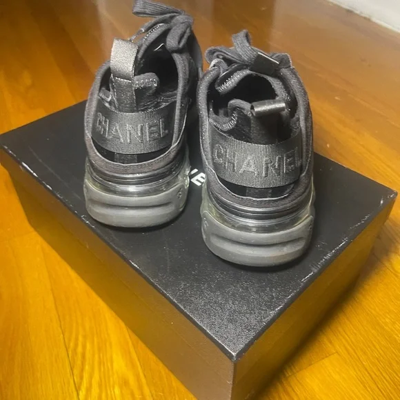 Step out in style with these sleek black sneakers from Chanel. Perfect for any occasion, these shoes offer both comfort and elegance.
