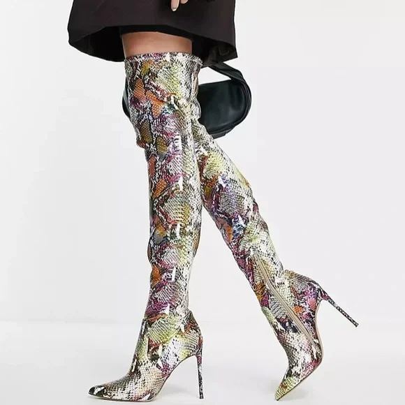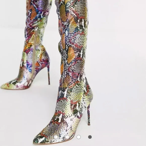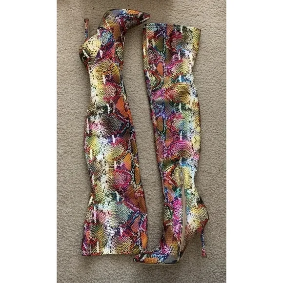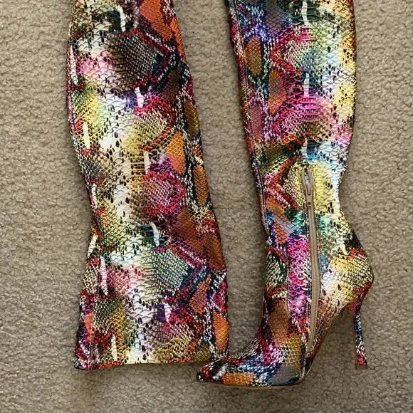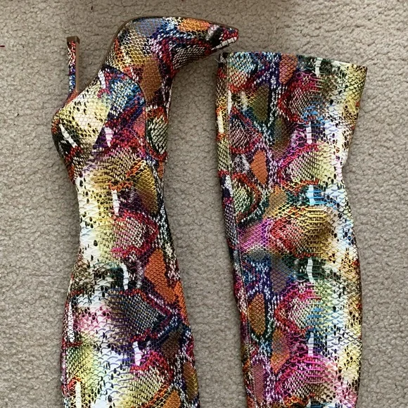 NWTComes with box!These were LIMITED EDITION and are now retired and no longer sold! Color is breathtaking!These heels are absolutely gorgeous! These model photos do not do these shoes justice. Wherever you wear these you are going to be the one that everyone will be looking at! Absolute show stopper.Unfortunately, if you have wide calves this would probably not work well with you.It cannot be worn with pants or leggings underneath… it is skin tight but comfortable when I tried it on.Note: The heels are a bit high so you have to be a pro heel walker to be able to absolutely rock those. Personally that was where I lacked… I usually wear lower heels so these were a bit much for mePlease refer to the model wearing similar heels in the photos. The boots I have are a lot more vibrant in color than the ones in the photos… they are not the same boot color but the same style (I think)Comes with elastic at the very top of the boots so they hang on to your skin well and don’t slip!