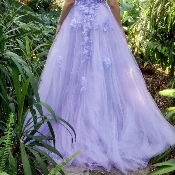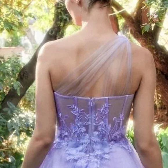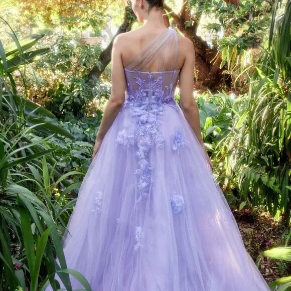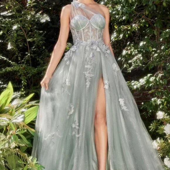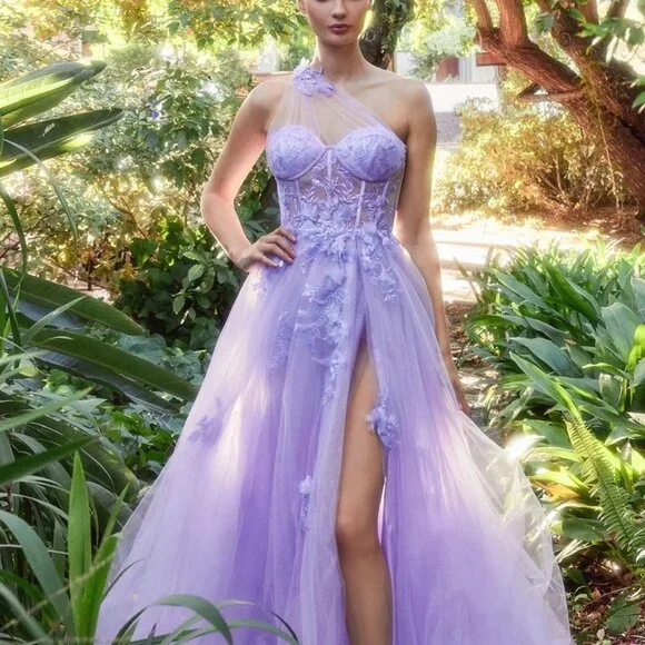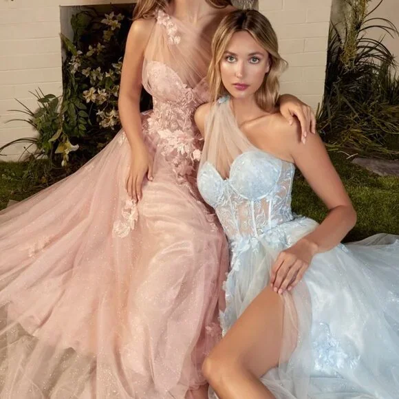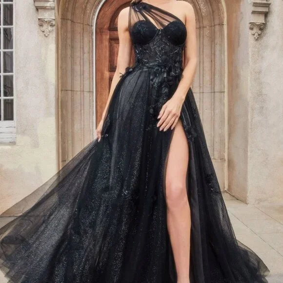 This one shoulder A-line gown is a stunning choice for your next formal event. The dress features a layered sparkly tulle skirt and a sheer corset bodice with lace floral applique. The layered tulle skirt adds volume and movement to the gown, while the leg slit adds a playful and sexy touch to the overall look of the dress. Whether you're attending a wedding, prom, or other formal event, this dreamy gown is sure to make you feel confident and beautiful.size chart in the photos section...price is firm....Black blue blush pink lilac sage red yellow … message after ordering with color choice...Tags, formal , evening, prom, party, gala, quinceanera, bridesmaid, bridesmaids, mother of the bride, mother of the groom, military ball, marine ball, ball gown, sweet 16, debutante,vacation, cruise, date night, homecoming, photo shoot, baby shower, special occasion , black tie, concert, wedding, reception ceremony , maid of honor, matron of honor, bachelorette, blue, black, burgundy, red, royal, navy, light, powder, hot, pink, fuchsia, blush, champagne, gold, silver, orange, yellow, green, emerald, hunter, dark, bright, olive, white, ivory, off, cream, purple, lilac, lavender, off shoulder, one shoulder, halter, boat, illusion, spaghetti strap, fitted, sheath, mermaid, long sleeve, cap sleeve, v neck, sweetheart neckline, backless, corset, open back, off the shoulder, satin, two piece, a line, mermaid, sheath, fitted, with leg slit, lace, with sleeves, long, short, midi, cocktail, m