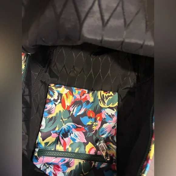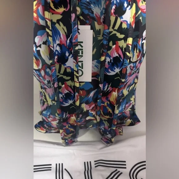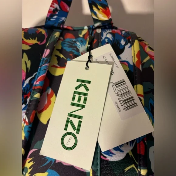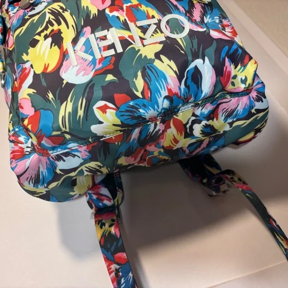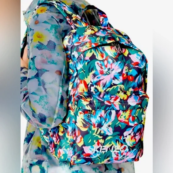 Introducing the limited edition Kenzo x Vans women’sCollection. This backpack features a beautiful floral pattern in multicolor, made with high-quality materials including polyester, nylon, stainless steel, and polyamide. It is designed for women’s and is a perfect accessory for any occasion.With its unique style and brand, this backpack is a must-have for any fashion enthusiast. The backpack also features several aspects, including a spacious interior, multiple pockets, and a comfortable strap. This item is perfect for those who are looking for a stylish and functional backpack. Canvas backpack featuring multicolor floral pattern throughout. Webbing carry handle at top. Twin padded adjustable shoulder straps. Zippered compartment and logo printed in white at face. Two-way zip closure at main compartment. Zippered patch pocket at interior. Black textile lining. Silver-tone hardware. Approx. 13.5 length x 15 height x 4 width. Part of the Kenzo x Vans collaboration Supplier. Comes with dust bag.