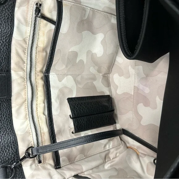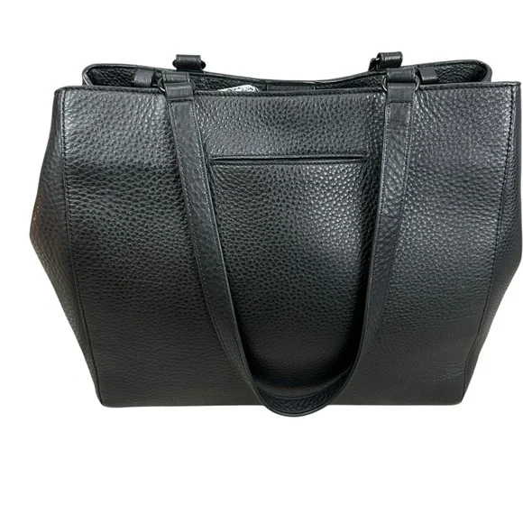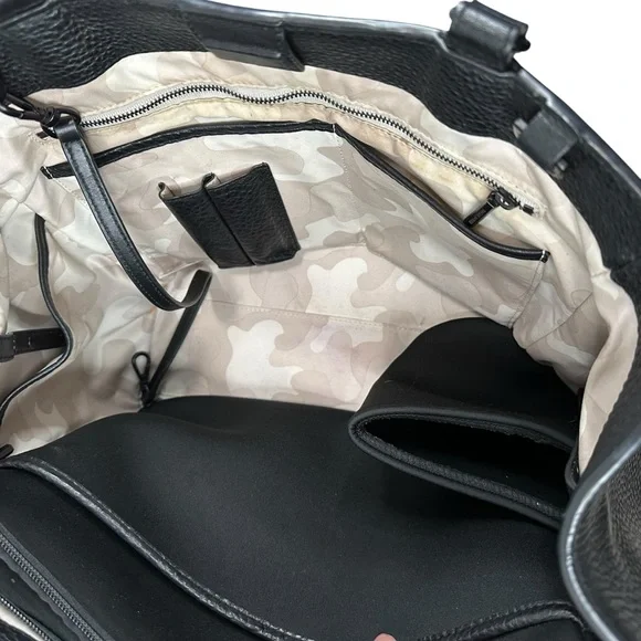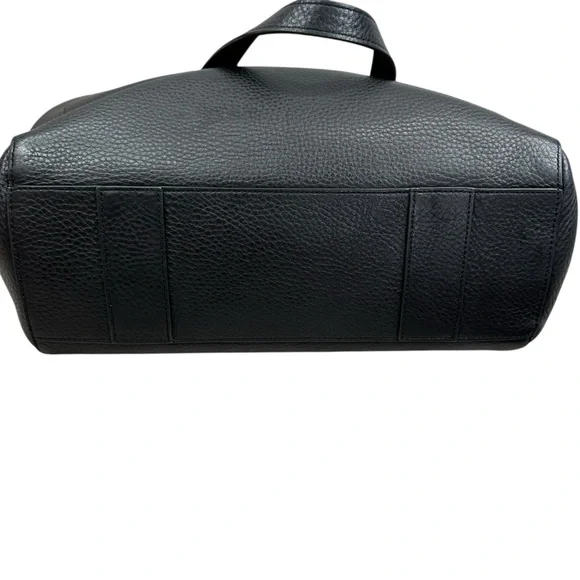 DAGNE DOVER Allyn Medium Leather Tote BagCondition: great condition -some light staining on inside liner in spots, nothing majorColor: blackProduct Details:Looking to downsize your Allyn? Look no further.The Medium Allyn is perfect for those that want to take things down just a notch at least as far as size goes. As far as life goes, the Medium Allyn can keep up with just about any pace. It might look like a trendy tote on the outside, but it works super hard on the inside. Probably a lot like you.While the magnetic tab closure gives you more space when you need it, the interior snap fastener gives you an alternative way to carry.The neoprene laptop sleeve and bottle holder protect your valuables and keep water in its place. Interior pockets keep your things organized and out of sight if needed. And, as always, we've included our signature key leash.Because who doesn't love this seemingly simple lifesaver?100% Genuine Pebbled Leather BodyZinc Alloy Hardware in Matte Black FinishTwo handlesMagnetic closureTwo pen/lipgloss loopsRemovable leather key leashInterior slip pocketSide slip pocketInterior adjustable snap fastenerNeoprene laptop sleeve with zipper Phone pocket with ID compartmentInterior zip pocketNeoprene bottle holderNeoprene slip pocketLeather feetApproximate Measurements:L 13.25" × H 10" Neoprene Tablet Sleeve with Zipper closureL 13.5" x H 12.25" x W 4.75" (snapped)L 16.5"' x H 12.25" x W 4.75" (unsnapped)11.25" Handle Drop