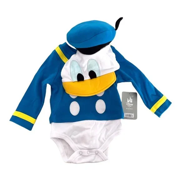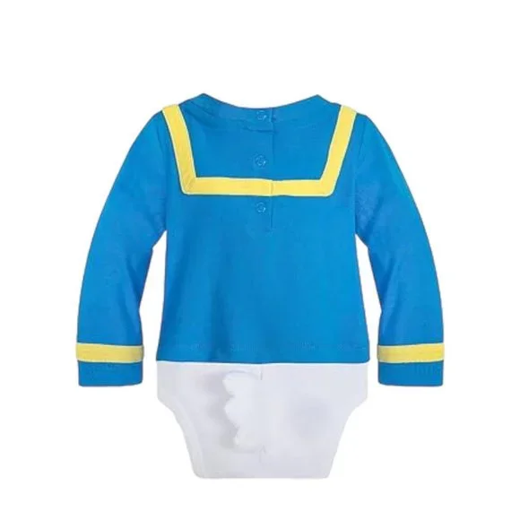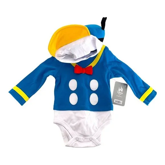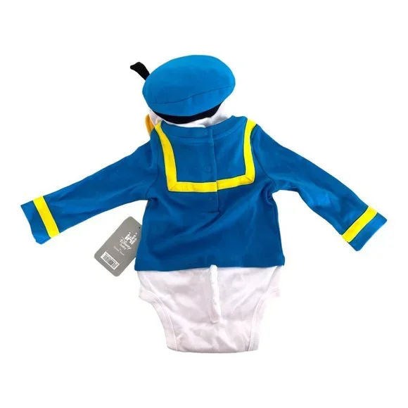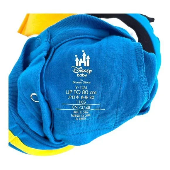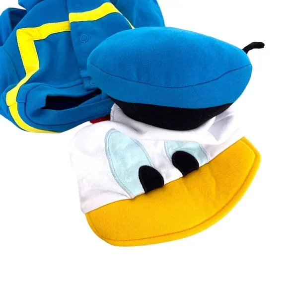 Disney Store Disney Baby Donald Duck Costume Bodysuit for Baby 9-12 MonthsGenuine, Original, Authentic, Disney Store Inspired by Donald Duck’s signature sailor suit, this adorable baby bodysuit costume will really quack you up. Includes a fuzzy ducktail in back, plus character beanie cap with foam bill and soft-stuffed hat.Includes Donald Duck bodysuit and beanie capCostume bodysuit with appliqué and embroidery decorationBowtie appliqué at frontLong sleevesRibbed necklineFuzzy ducktail at backSnaps at back for easy on and offSingle row of snaps inside legCharacter beanie cap features embroidered elements, foam-filled bill, and padded sailor hatSize: 9-12MCondition: New With TagsNew to ? Use the invitation code KATKEN2 for $10 off your first order.