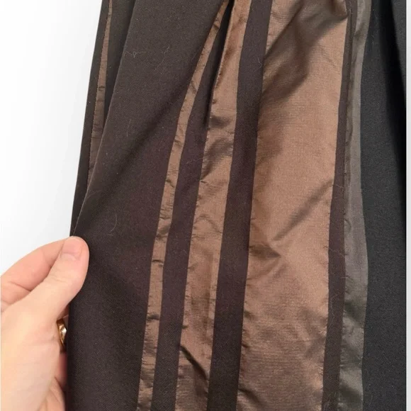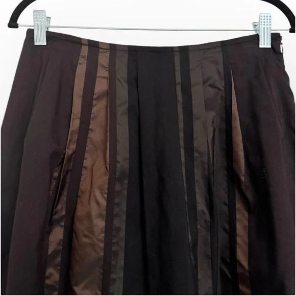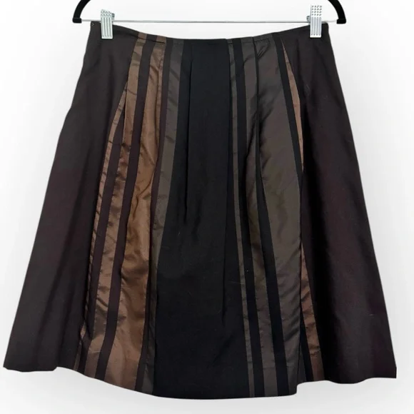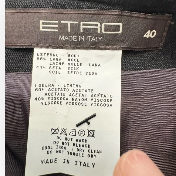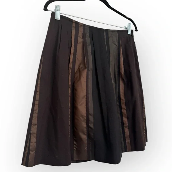 ETRO NWOT Knee Length Skirt, Size 40 (US 8), Black/BrownNew without tags, No flaws$1690 RetailAuthentic ETRO Skirt features a dark color scheme with contrasting vertical stripes, and a pleated design.Authentic ETRO SkirtKnee-LengthSide Zipper ClosureFully linedSize IT 40/ US 8Material: 56% Wool, 44% SilkLining: 60% Acetate, 40% ViscoseApprox Measurements Length: 20.5”Waist: 14.5”Feel free to make an offer if you like the item but not the price- all reasonable offers considered.Please review the photos carefully-they are part of the description. Items are preowned and sold "as is" unless description indicates otherwise. Preowned items are generally not in perfect condition so please manage expectations and do not purchase if you are picky or expect perfection. Vintage items usually have wear consistent with age.Please ask questions prior to purchasing or making an offer, as all sales are final.484