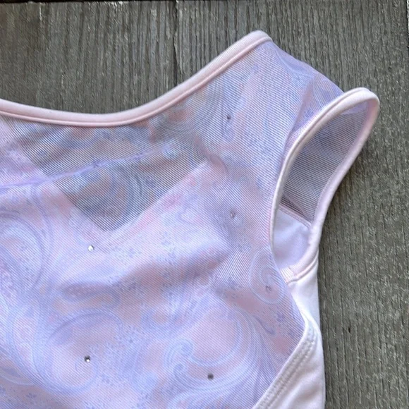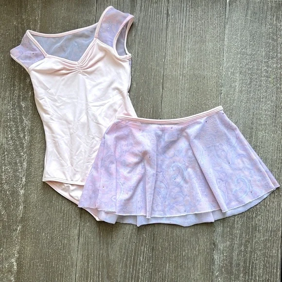 EUC Bloch Mirella Paisley Mesh Cap Sleeve Leotard and Matching SkirtLeotard:-Features a V neck with ruched bust detail- Paisley printed mesh cap sleeves and back- Delicate paisley printed mesh and contemporary back detailingSkirt: - Features an elasticated waistband and paisley printed mesh in a short lengthExcellent Used Condition - worn handful of timesSmoke Free HousePet Free House