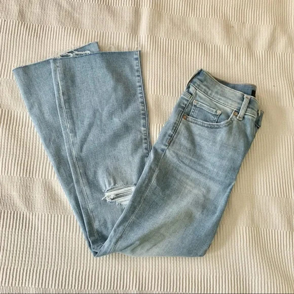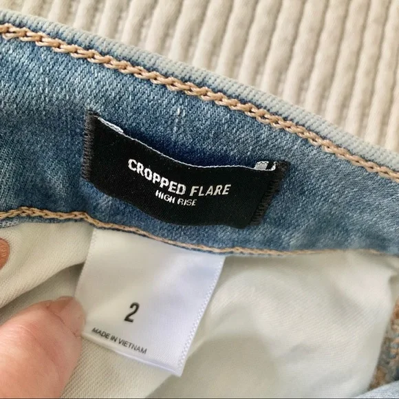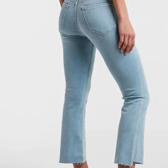 With just enough flare and a raw hem cut, these high rise jeans are ready for your coolest looks. Match them up with your favorite tees, sweaters and silky tops.FEATURES & FABRICHigh waisted; Light washFive pocket styling; Belt loops; Button and zip flyCropped length; Flare leg; Raw hemInseams: Short 23", Regular 26", Long 28"Petite: Perfectly proportioned rise, inseam and designCotton/Rayon/Polyester/SpandexStretch: Just enough stretch for all-day comforttrendy | summer | spring | floral tops | floral tank top | boho | festival | sexy | girly | brunch outfit | beach outfit | vacation outfit | layering top | vici | free people | white fox | h&m | zara | express | hippie | 60’s 90’s 70’s | 12th tribe | beachy aesthetic | vibe | bohemian | retro | vintage | johnny | gypsy spell | arnhem | chic | anthro anthropologie | madewell | faithful | love & lemons | mumu | wildfox | reformation | revolve | zara | dressy | festival | contemporary | layered | casual