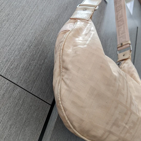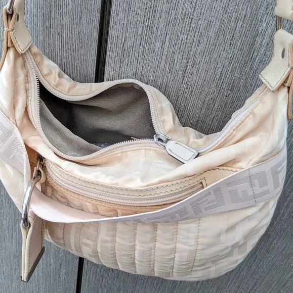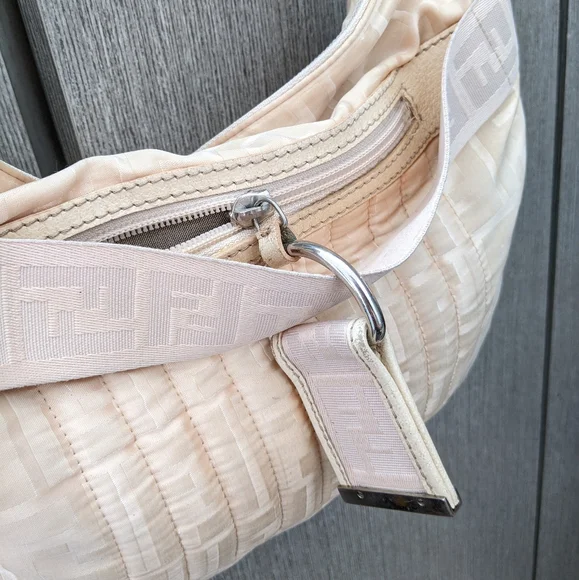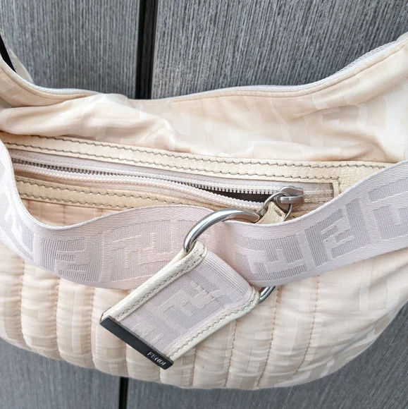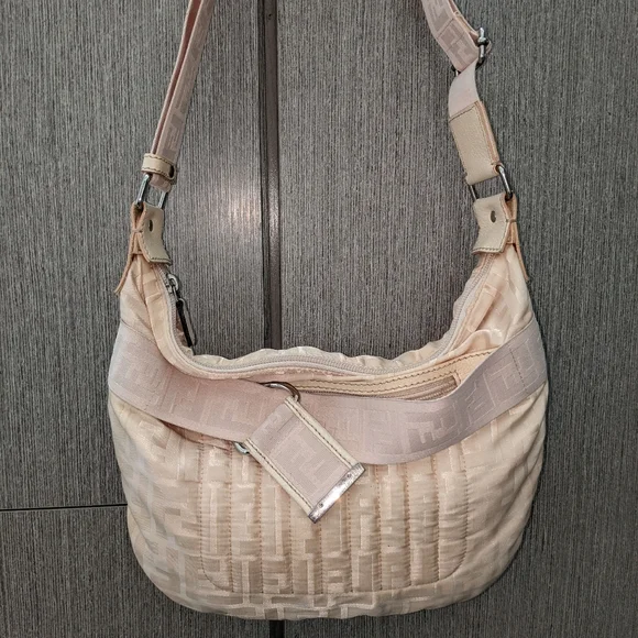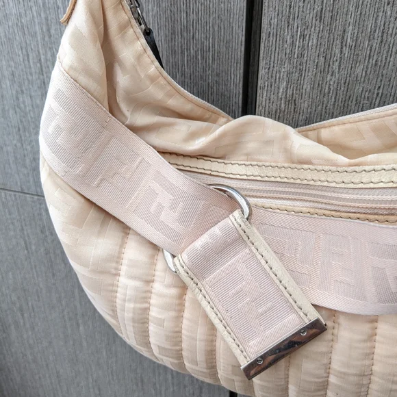 FENDI Zucca Jacquard Pink Blend Shoulder & Crossbody Bag ♥️ this cute Fendi bag features a jacquard body, adjustable FF Logo imprinted strap, and top zip closure!** incredibly RARE **love the design - the Fendi Strap buckle end moves with the zipper - super cool! serial number inside as shown in pictures✨ Condition: 8/10 - in amazing pre-loved condition!! small marks on the exterior canvas with slight peeling around the trimming and edges but the interior lining remains clean and the Strap is still in immaculate shape (please refer to the photos & feel free to reach out with any questions you may have) ⭐ 100% Authentic with Free Authentication viaon orders over $500 ⭐ 8.27"L x 12.6"Wx0.79"H