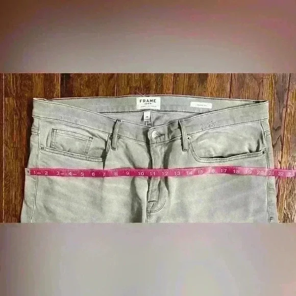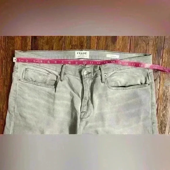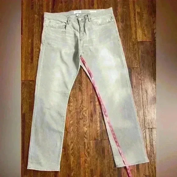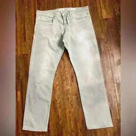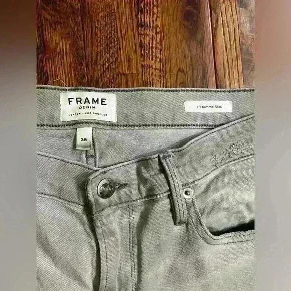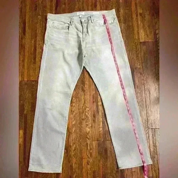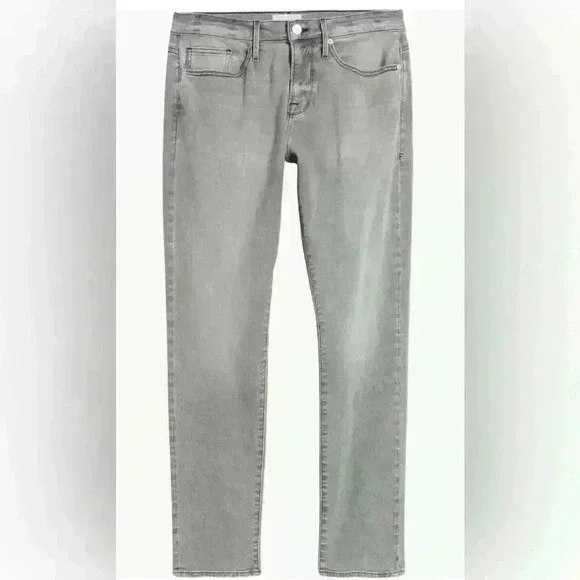 Great Pre-Owned Condition- FRAME DENIM L'Homme Slim Fit Jeans in Curbs (Light Grey)- No Holes, Stains or Tears- Measurements: Inseam 31.5” | Please see pictures for additional measurements. If additional measurements needed please don’t hesitate to ask! - Fabrication: 94% Cotton | 5% Polyester | 1% Elastane - Happy to answer any questions! - Size: 38- Color: Curbs, Light Grey- Tags: Slim Cut, Medium-Stretch, Mid-Rise, Spring, Summer, Fall, Winter, Trending Smoke Free Home | Dog Friendly HomeA FRAME signature jean, this style is designed with a classic 5-pocket construction, comfortable mid rise, flattering straight leg, and tapered slim fit at the leg opening. Crafted from smooth comfort stretch denim. A medium-stretch denim with the softest handfeel for a comfortable, flattering fit from the first wear.