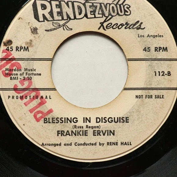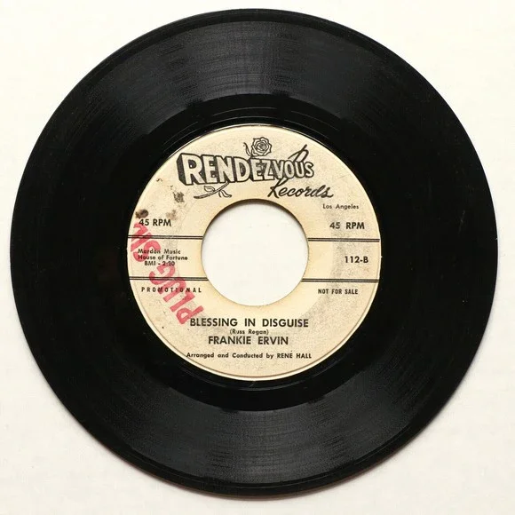 Catalog# 112 Artist: Frankie Ervin Songs: Matrix# R-112-B E5105 - The Story Matrix# R-112-A E5104 - Blessing In Disguise Good, pre-owned condition. Surface wear and some noise. The audio sounds good otherwise. Levels are good.R0132