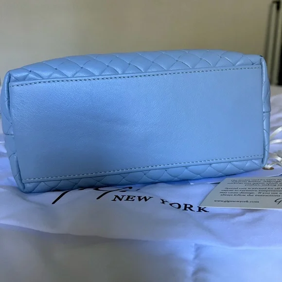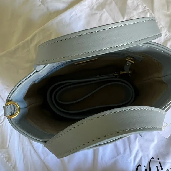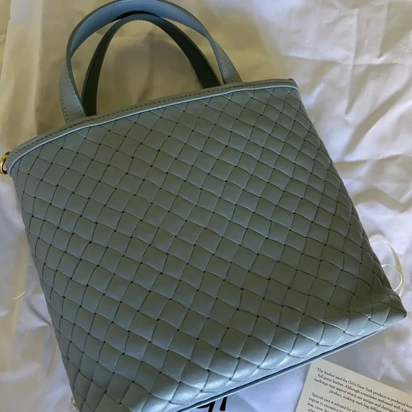 Smoke free pet free homeUsed only a few times to match my outfit Not seeing any visible scratch or scuff marksRetail $295From Gigi Website:This stylish small top handle tote is crafted in Embossed Woven leather. Billie features; top handles and an optional crossbody strap with brushed gold clasps. Front exterior zip pocket, large interior zip pocket and magnetic closure. This is a fabulous small tote for everyday wear.Embossed Woven Italian LeatherLarge interior zip pocketExterior zip pocketCotton Canvas Logo LiningMagnetic closureHandle: 5" dropDetachable, adjustable crossbody strapHandcraftedSize: 9 ½" Wx 3¾" D x 8" H