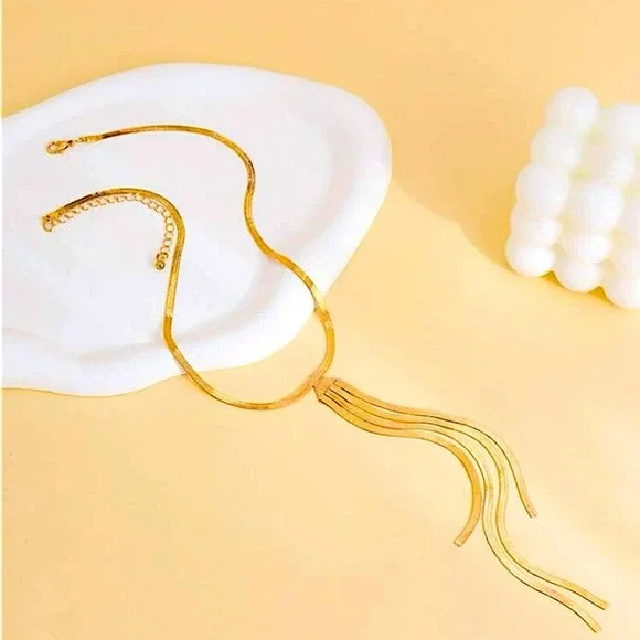 Gold plated fringe tassel statement necklace. Other Listings Include Buckle Tree of Life Hoop Accessories Coin Cat Handmadejewelry stylish Fashion Butterfly Bee North Star Starburst Signet Gen Zodiac Yin Yang Name PlateAsymmetry Tassel Drop Bow Knot Beaded Irregular Statement Eternal Bamboo Cuff Geo Asymmetric Gemstone Pearl Love Heart Pendant Geometric Amethyst Pendant Owl Coin Sapphire Topaz Emerald Rose Gold Pearl Tricolor 6 7 8 9 GP Figaro Men Mystic Fire Women 10K 14K 16K 18K 24K Leopard Cheetah Cuff Ring Adjustable Resizable Gold Plated Sterling Silver Gemstone Crystal Rhinestone Diamond Cubic Natural Stone Turquoise Onyx Citrine Zircon Natural Stone Ruby Topaz Emerald Platinum Sterling Silver 925 Stainless Steel Love Bangle Bracelet Ring Earrings Necklace Happy Smile Smiley Face Heart Charm Horse Hello Kitty Mickey Minnie Disney Boho Bohemian Handmade Genuine Unique Toggle Lock Key Feather Chain Link Tricolor Coin Teddy Bear Choker 925 Stamped 14K 16K 18K 24K Rabbit Engagement Statement Y2K Minimalist Layered Plus Size Top Shirt Women Pants Jeans Trousers Dress Boots Shoes Handmade Platform Heels Stiletto Cardigan Sweater Blouse Coat Jacket Belt Feather Safety Pin Zipper Flower Ball Clover Cloverleaf luxury summer cute wedding