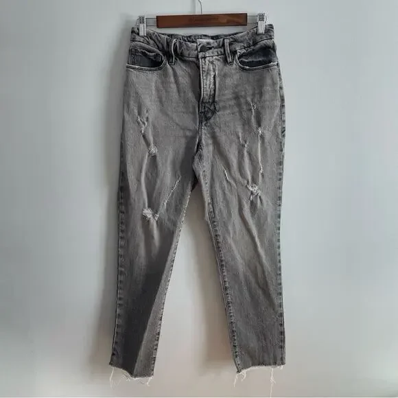 Good American | The Weekender Gray Wash High Rise Slim Straight Fray Raw Hem JeansIn excellent condition. No holes or stains. Size 4/27. {See photos for measurements}[ If you are interested in more than one listing or offer sent, I can create a bundle for a lower shipping rate. Shipping is typically done next business day. ]Style gwkrh62bbt k313