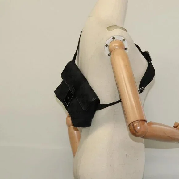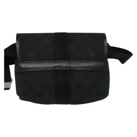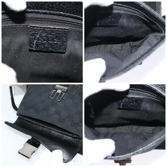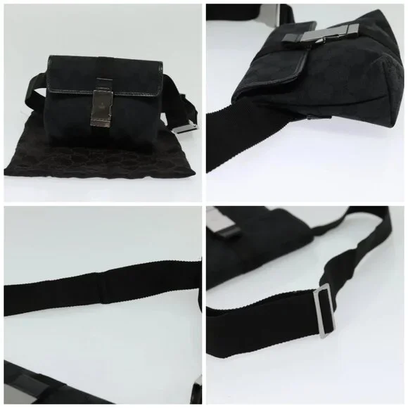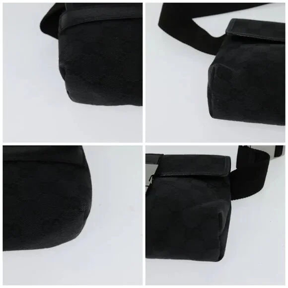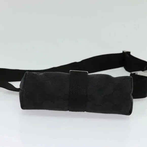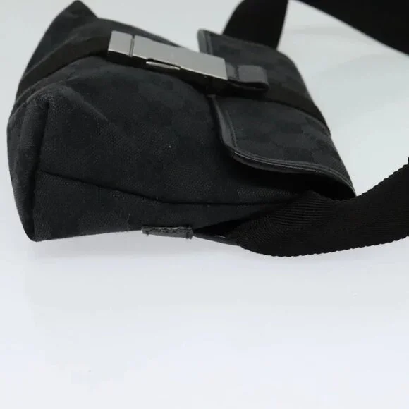 GUCCI GG Canvas Waist bag Black Silver 131236 Auth am8259