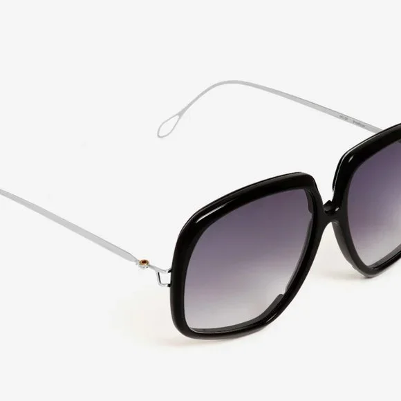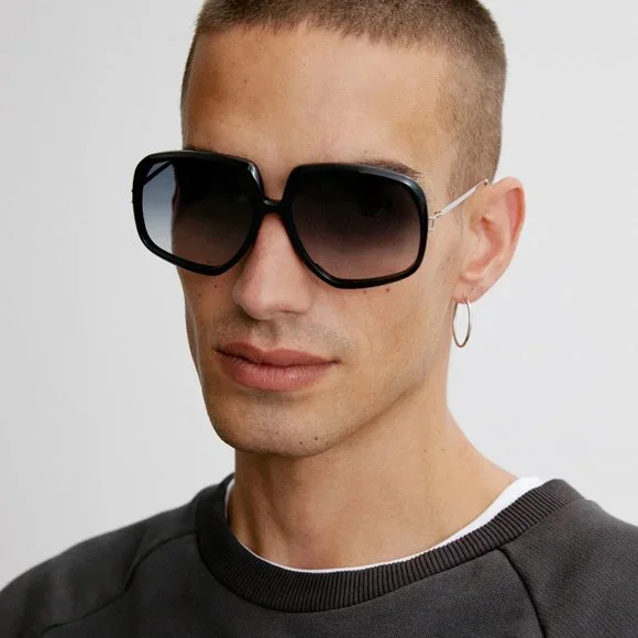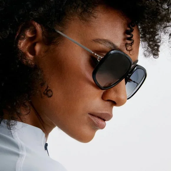 Unisex ultra-light eyewear from the designer team Philipp Haffmans & Michael Hüyng in collaboration with New York stylist Marcus Paul.The sophisticated aesthetics of the New York based stylist Marcus Paul are reflected in the eyewear of the collaboration with Haffmanns & Neumeister. The chunkyness in form and heaviness in volume, stands in bold contrast to the filigree and ultra-light temples. This creates a special aesthetic that makes the collaboration between Haffmanns & Neumeister and Marcus Paul so special in our eyes.PENELOPE | CHARBON, originally $496Like new. Worn once.- Black chunky acetate front- 0.7 mm stainless steel temples- Brass rivet hinge- Gadient lenses- ZEISS tinted impact resistant Polyamide- Backside anti-reflection coating- 100% UVA/UVB protection- Branded case, cloth, and box included