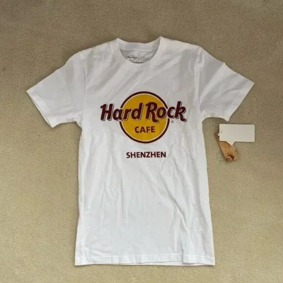 Experience the iconic style of Hard Rock Cafe with this classic white t-shirt. Perfect for casual outings.from shenzhen chinasize x smallbundle with items in my closet for a discounted price!if you’re new to poshmark or a guest buyer, sign up using my code ‘EXELIAUS’ for $15 credit towards your first order :)