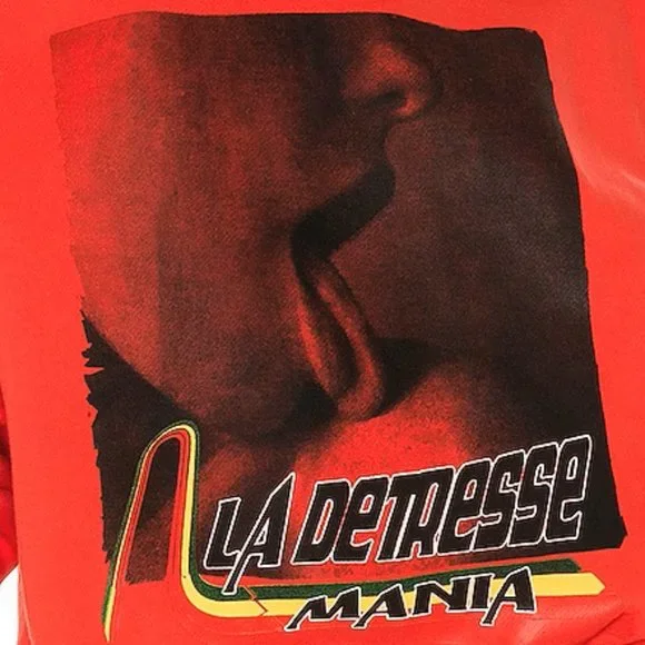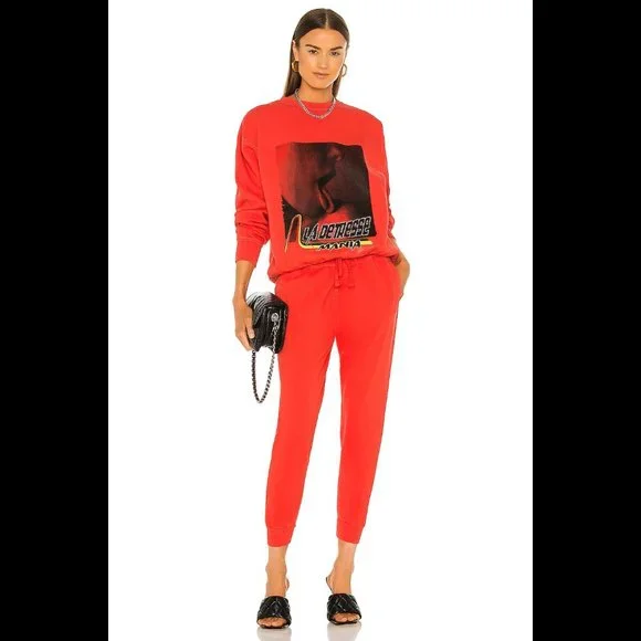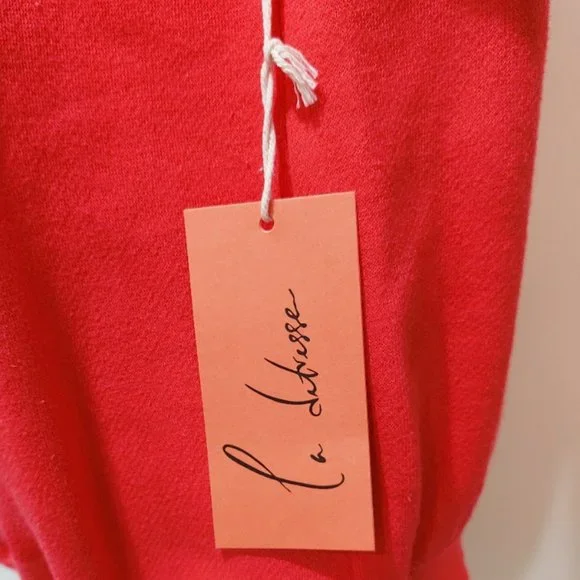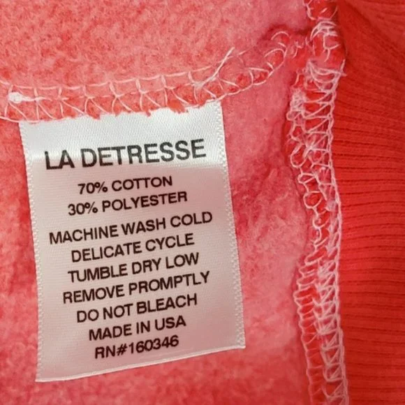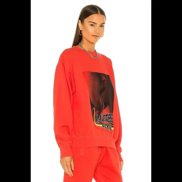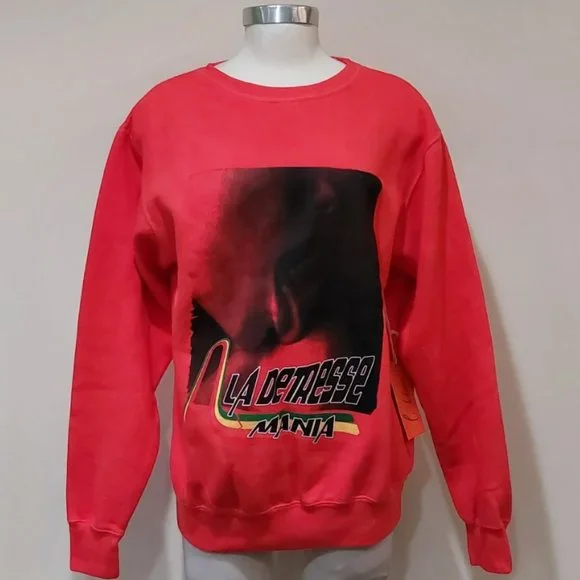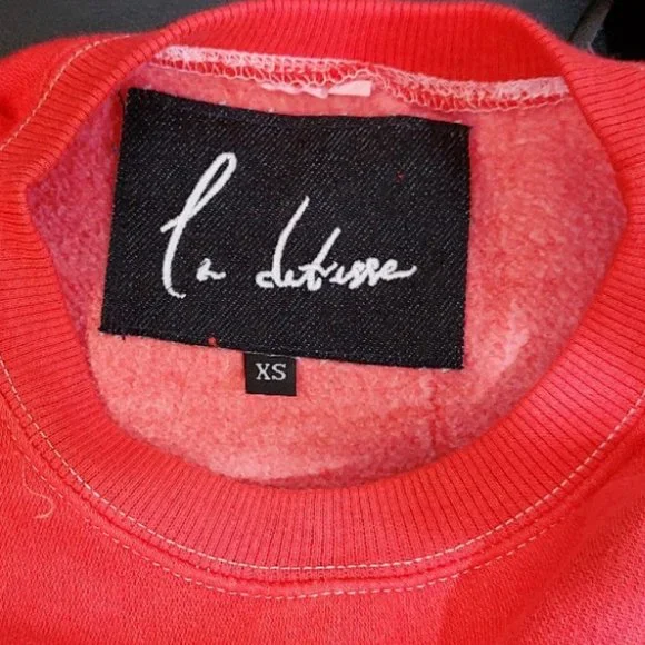 RARE! Bright, bold, and effortlessly cool La Detresse Mania Obsessive Pullover. Come in vibrant orangy- red (the official color is Strobbery). Designed with a crew neckline, relaxed fit, sexy screen print graphic, and printedLa Detresse Mania logo on the front, ribbed edges, and fleece lining. Made from soft 70% cotton/30% polyester.Made in the USA. Approx measurements: Pit to pit 21", Sleeve 24.5", Length 24". Revolve Style No. LADR-WK20. Manufacturer Style No. 002-PU-47-OBS. NWT from a clean, smoke-free home.