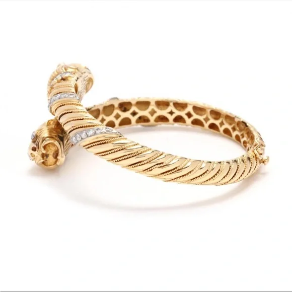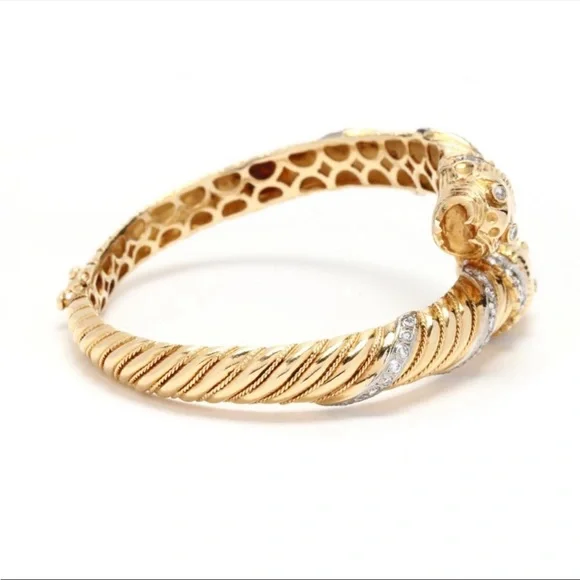 Incredible 18k Yellow Gold & Diamond 1.68 ctw Chimera Panther Bangle Bracelet