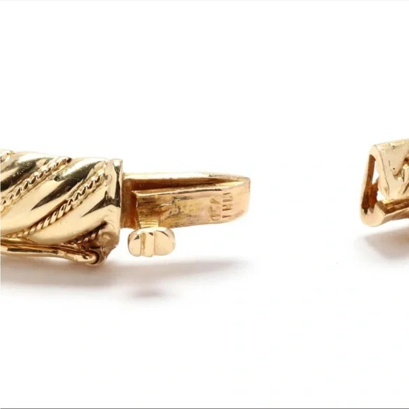 Incredible 18k gold and diamond (approx 1.68 ctw) double chimera panther head bangle. It has a significant amount of diamonds and heavy 18k gold, truly impressive craftsmanship - it is a statement piece with great value.This bangle is hinged and tapered with a crossover double chimera head motif set with full cut round diamonds weighing approx. 1.68 total carats (F-G color, VS clarity). Wire work detailing completed with integrated clasp sigh safety catch. It is stamped 750 with makers mark appears to read “MHI”.Measuring 1 inch at widest and 6.25 inch interior circumference.Authenticity Guarantee: All of our items are guaranteed to be authentic designer items. If found to be otherwise we will refund the purchase with a professional certification stating such, within 14 days of purchase. We can not guarantee the history of any piece, such as prior modifications or repairs.**Due to the valuable nature of our items, all sales are final and as is. Please look closely at provided images. Contact us and we will be happy to provide any additional information or pictures as needed.