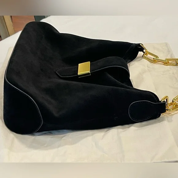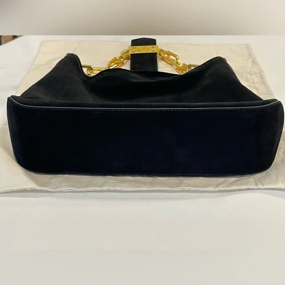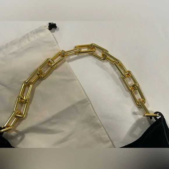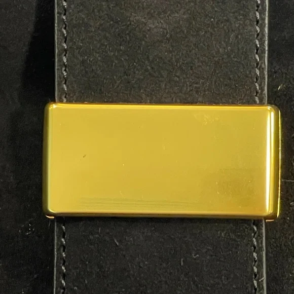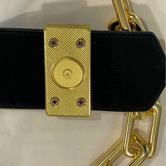 Pristine Condition.Used 1xThe oversized leather buckle features gold-tone hardware on the outside with an easy magnetic closure on the underside to keep your belongings safe and secure. It also tucks right underneath your arm for the just-right size.Leather.Imported.Item CC00110"H x 13"W x 3 1/2"D 12" chain handle dropNon-smoking, pet friendly homeAll Sales Final.