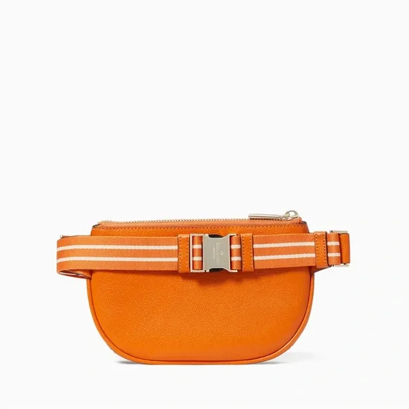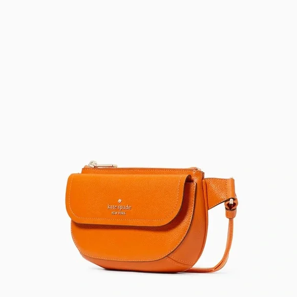 Authentic Kate Spade New YorkNWT Brand NEW with TagCollection: Rosiepebbled leatherKSNY Metal Pinmount LogoSignature Two Way Script Logo LiningTop zip closureInterior credit card slotsExterior front flap pocket with magnetic snap closureAdjustable Striped Webbing Strap Belt with Easy Push In Buckle ClosureBrand Engraved on HardwareSize: 8.4" W x 5.44" H x 1.8" DColor: Carrot Cake (Orange)MSRP $299 plus taxKB712Can be worn across the chest or at waistline