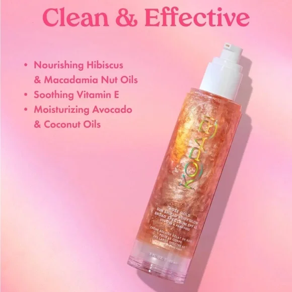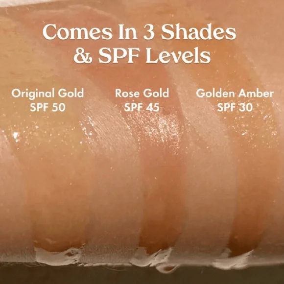 Rose Gold Sun Shield Body Glow Sunscreen SPF 45 with Vitamin E & Moisturizing OilsUVA/UVB protectionLuxurious and lightweight gel textureNew - Never Used5oz / 150mLThe glowing, broad spectrum SPF you know and love, now in limited edition Rose Gold! This sheer, lightweight body gel SPF is packed with moisturizing oils, nourishing vitamins, and ethically-sourced rose gold pearlescent minerals to give skin that perfect sun-kissed radiance, while innovative SPF ingredients shield you from UVA and UVB rays.Forget everything you know about that chemical sunscreen smell – Rose Gold Sun Shield Body Glow smells like Summer in a bottle with our juicy guava mango scent.