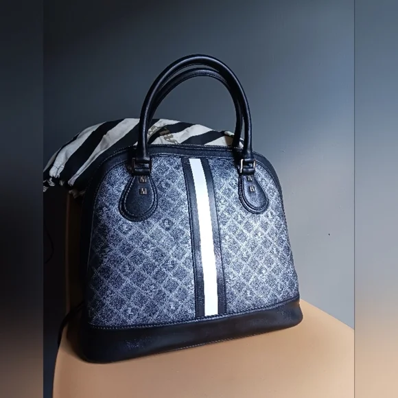 This stylish handbag features a sophisticated black and gray design, perfect for any occasion. Crafted with attention to detail, it offers both elegance and functionality.L.A.M.B Gwen Stefani black/gray travel, satchel bag used good condition with few small imperfections. I pictured everything please look very carefully at the picture. 13.5" length 5.5" deep 13m2" high