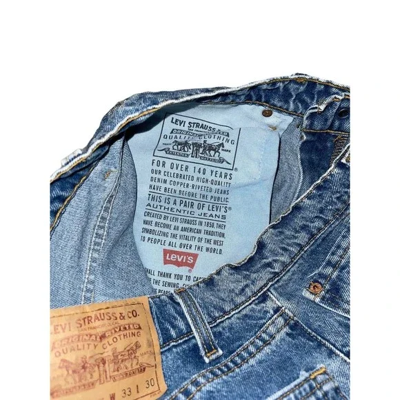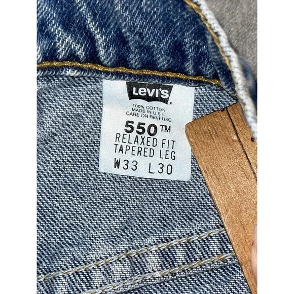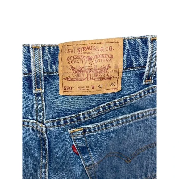 Make a statement with these vintage Levi's jeans, crafted from light-washed cotton denim in a classic fit. The 5-pocket design features a zip and button closure, with accents of the iconic Levi's logo. The tapered leg and mid-rise cut add a modern touch to this USA-made piece from the Levi's 500 Series product line. These jeans have been crafted with care to provide easy maintenance, and are machine washable for your convenience. Ideal for any occasion, these blue jeans are sure to become a staple in any wardrobe.