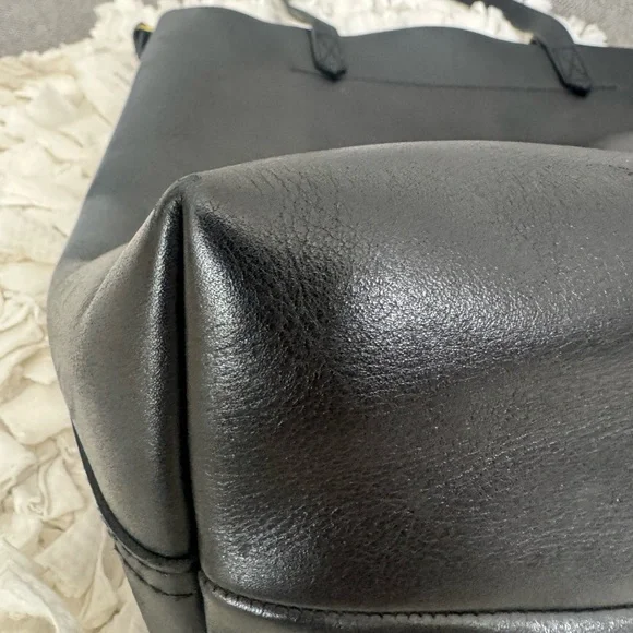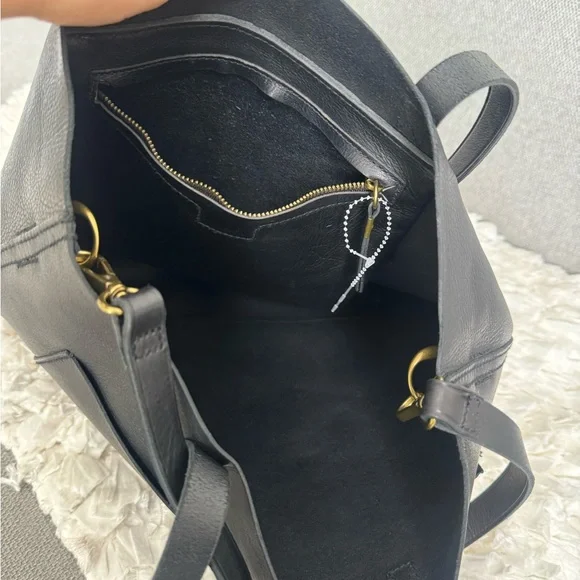 Introducing the Madewe" The Transport Medium Leather Tote, the perfect addition to your handbag collection. Made from true black leather and featuring gold-tone hardware, this tote exudes effortless style. The interior is lined with leather and includes a convenient pocket for your essentials. With top handles boasting an8-inch drop and an adjustable, removable shoulder strap with a 19-inch drop, this tote offers versatility in carrying options.Used max 3 times minor signs of wear !!!