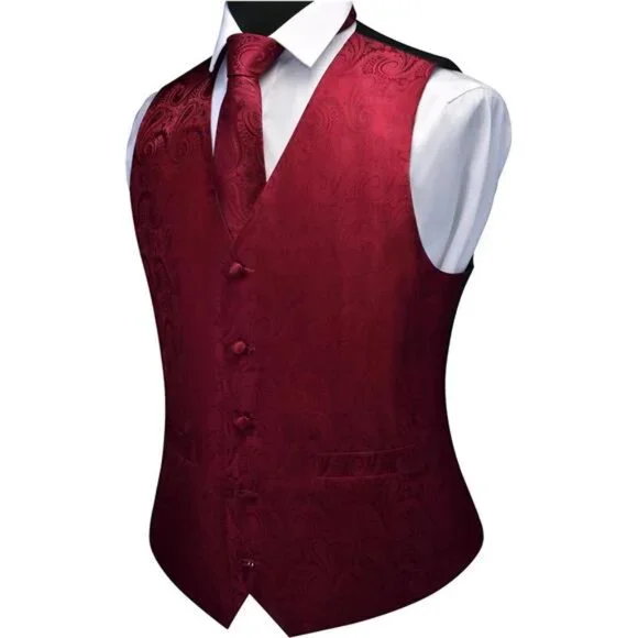 Material: 2400 Stitches Material makes the vest heavy weighted and elastic. No fading, no distortion, anti-wrinkle, and quick dry. Dry clean or hand wash is preferred. Please note that the washing water temperature should be lower than 40℃Package include: Vest+Tie+Bow Tie+Lapel Pin+Pocket square+Cufflinks+Tie ClipDesign: The suit vest is designed with fashion colors, V-neck Collar, 5 buttons and adjustable back buckle strap. Attention: Two pockets on each side can be cut into real pockets*Material:2400 Stitches Material makes the vest heavy weighted and elastic. Nofading, no distortion, anti-wrinkle, and quick dry. Dry clean or