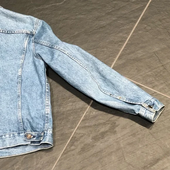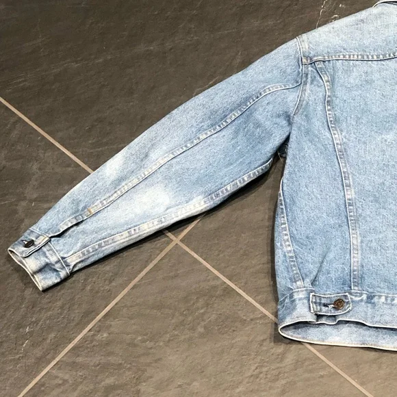 Vintage men’s Levi’s jacket. 40R size. Often called the Trucker Jacket. This one was made after 1984, from what I was able to research. (Due to the hand warmer pockets) Some fabric bleaching on the left arm of garment. Good condition.